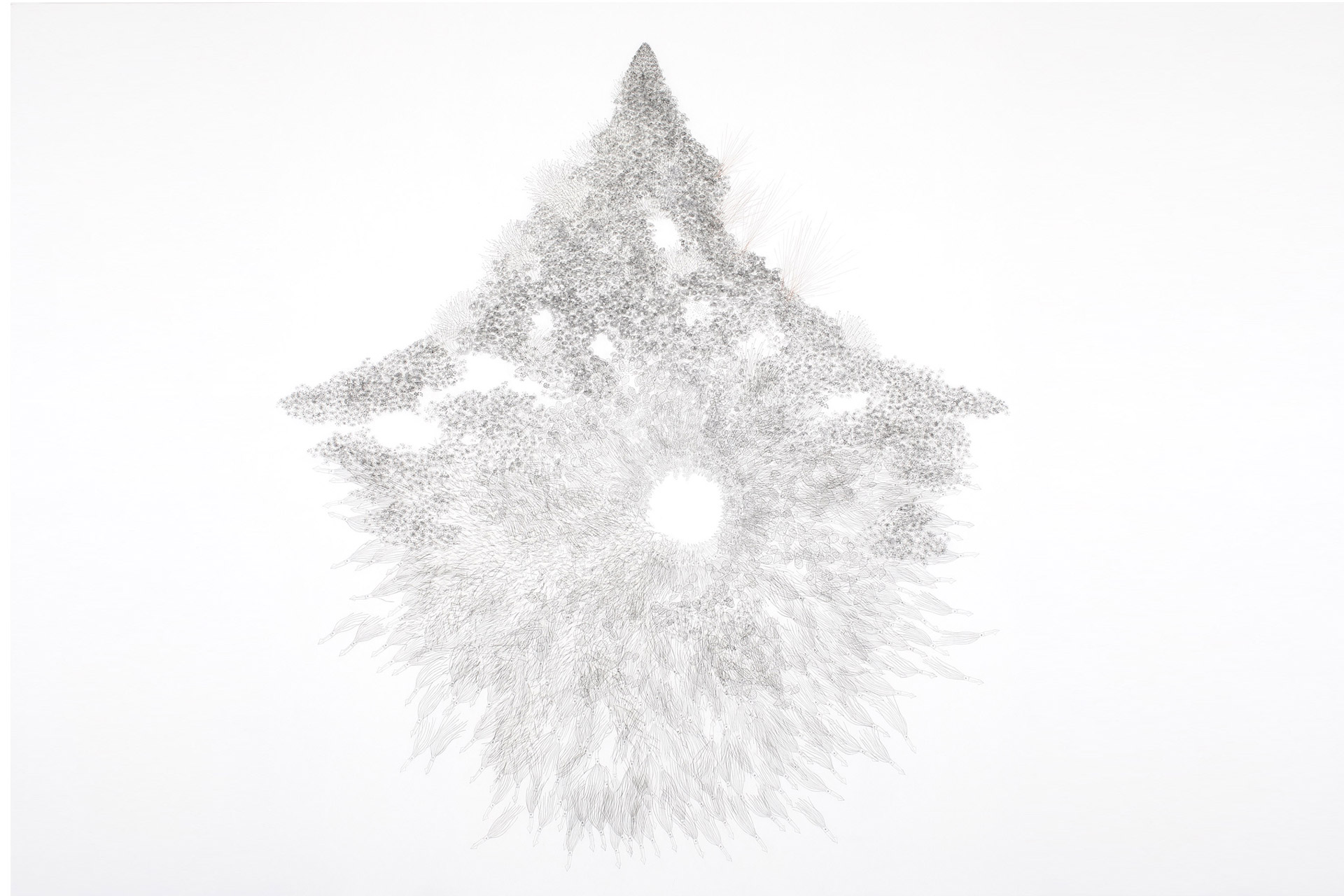 Pencils and hair on tissue paper and canvas