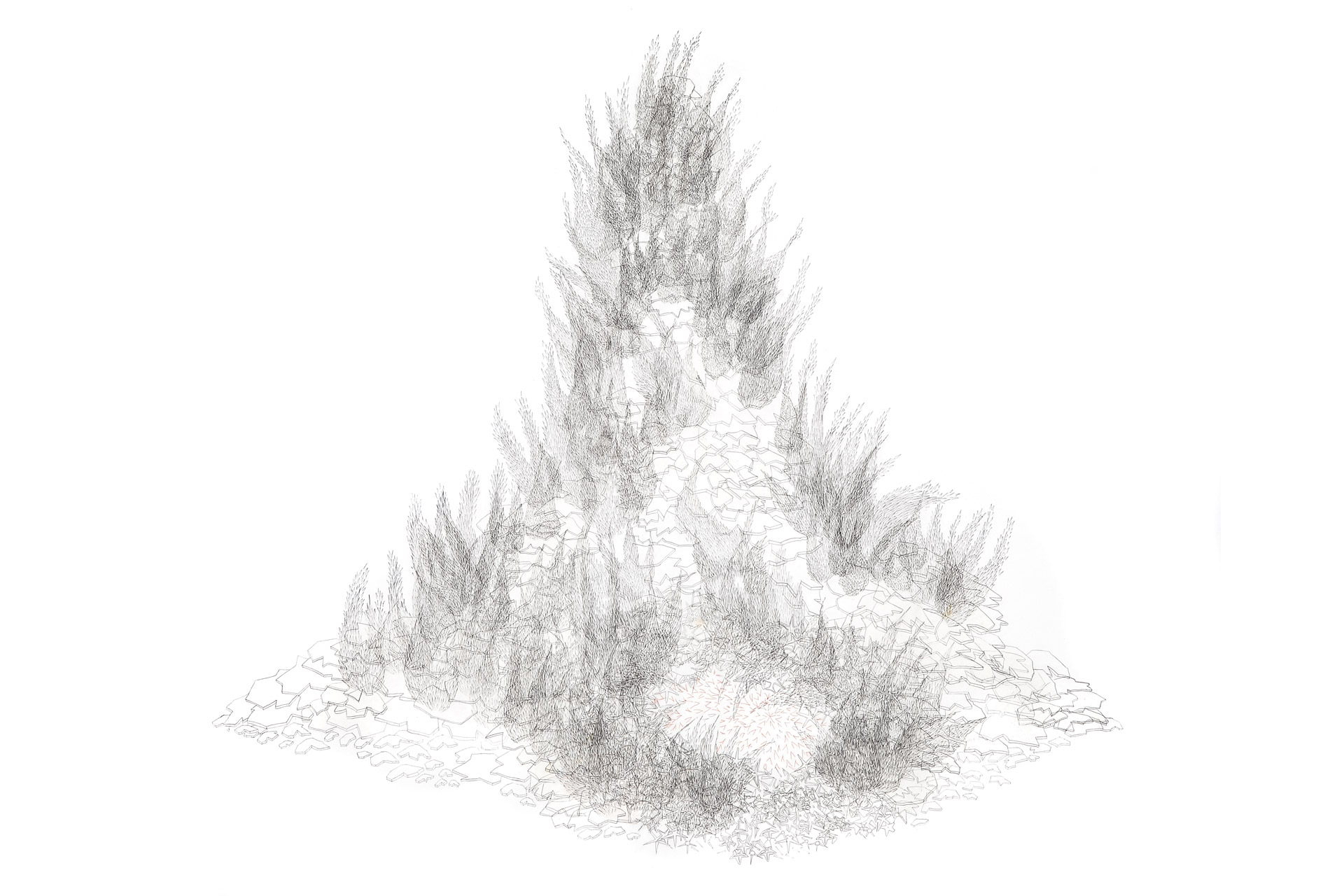 Pencils and hair on japanese paper and canvas