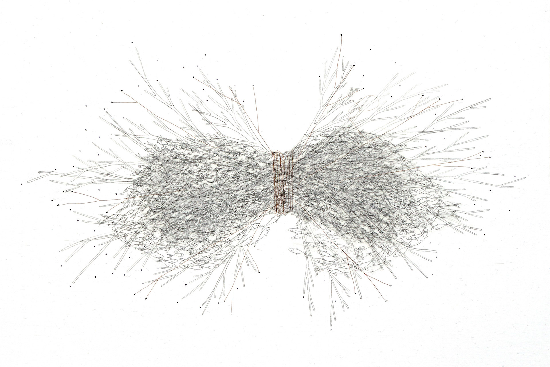 Pencils and hair on tissue paper and canvas