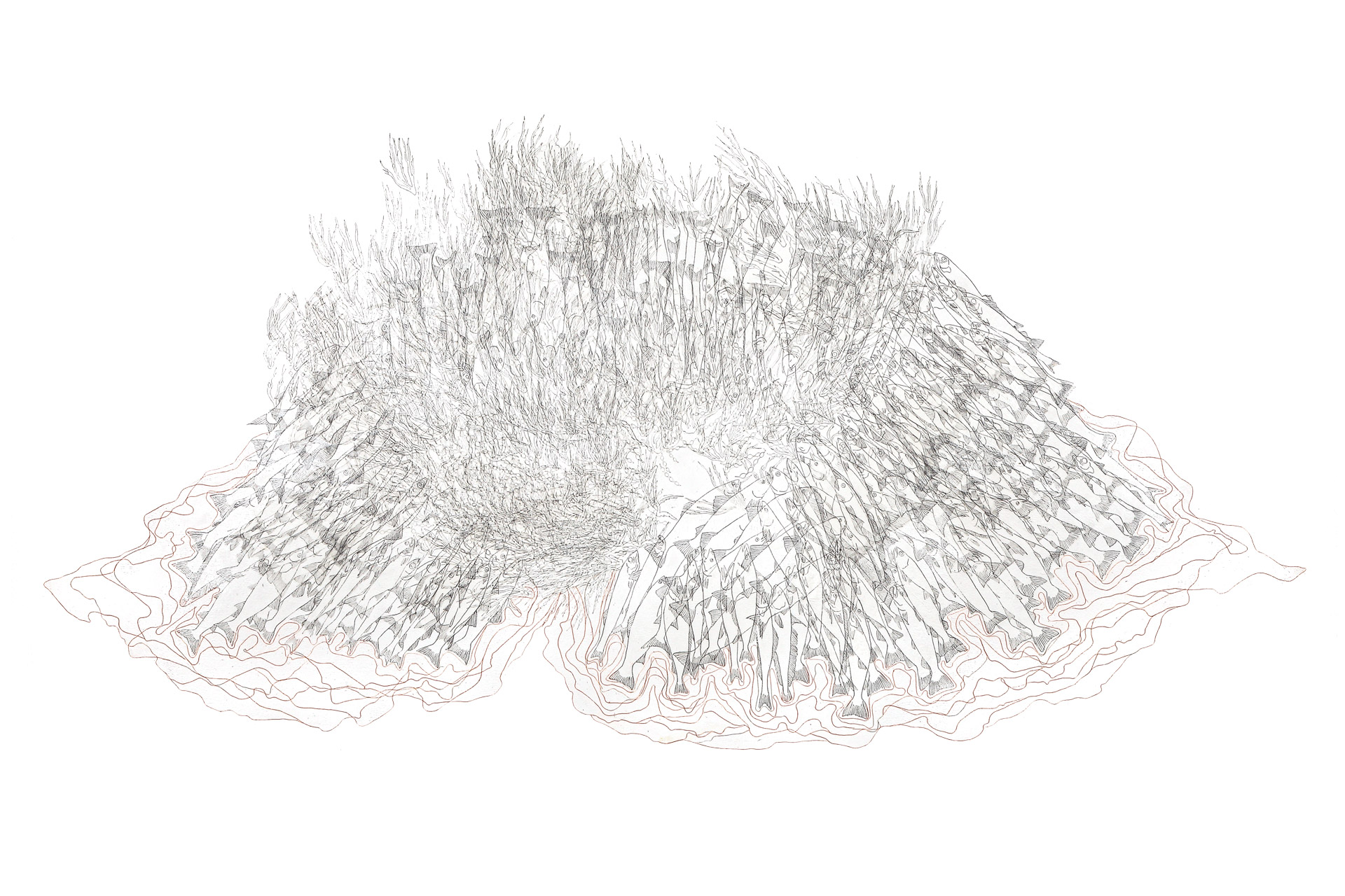 Pencils and hair on japanese paper and paper 300g cotton 100%